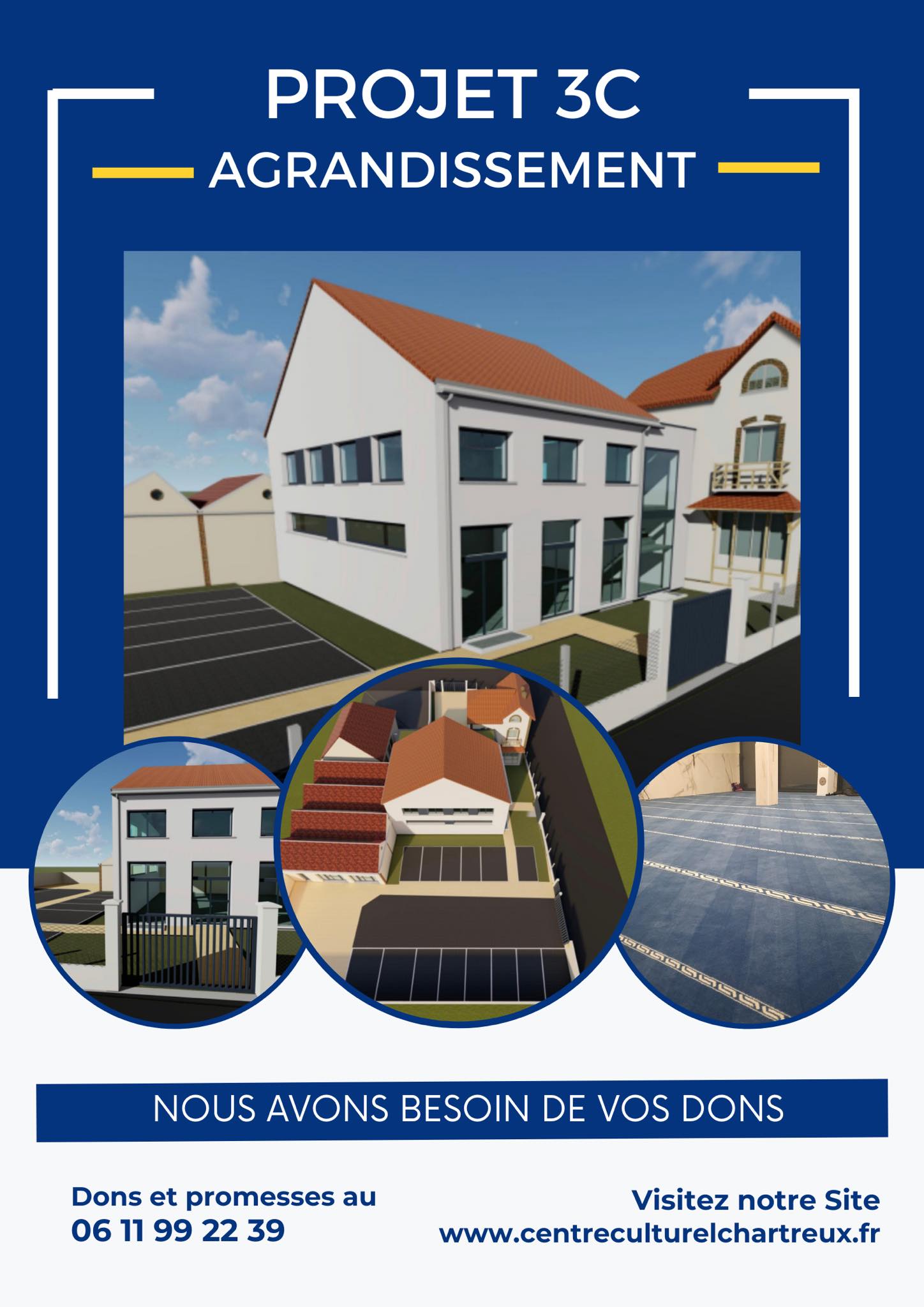 Le projet 3C Chartreux est composé de trois segments distincts, la Mosquée de la Fraternité, l’École Rawda et le Croissant Solidaire, ce projet ambitieux vise à créer un espace multifonctionnel où la spiritualité, l’éducation et l’engagement social se rencontrent harmonieusement.